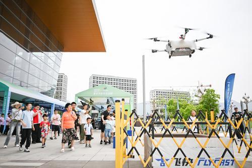 5月24日,赛力斯五云湖会议中心2025年重庆市科技活动周现场,无人机送外卖吸引不少市民驻足。记者 谢智强 摄/视觉重庆