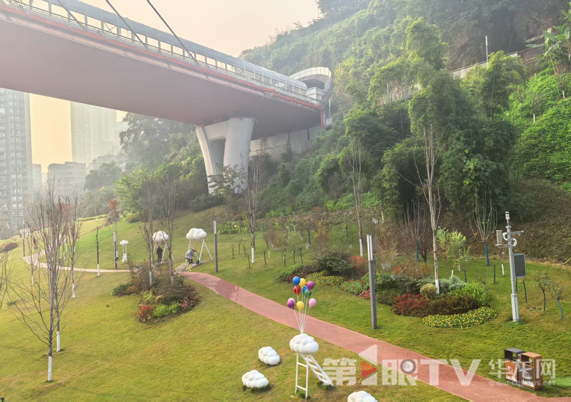 沙坪坝区沙滨路旁昔日荒坡变身城市公园。第1眼TV-华龙网记者 李舒 摄