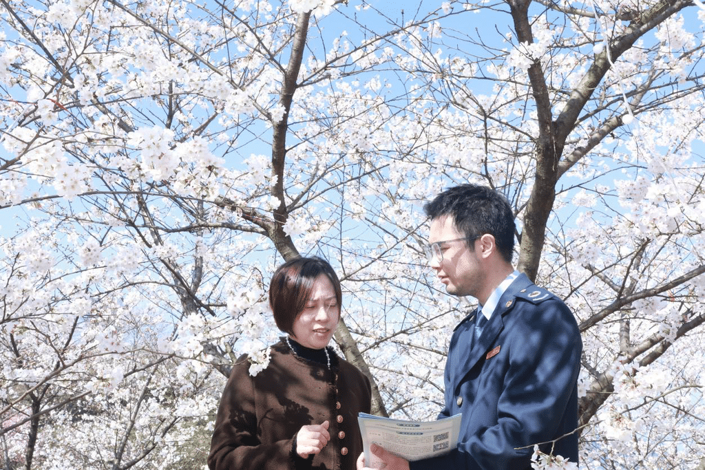 猫山樱博园樱花节期间,税务人员走进景区宣传税费政策。重庆市税务局供图