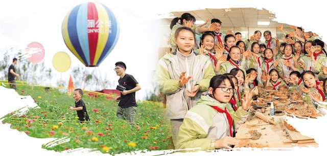 图左:蒲公英成长酷玩营地(大渡口区文旅委供图) 图右:学生体验捏彩泥(大渡口区教委供图)