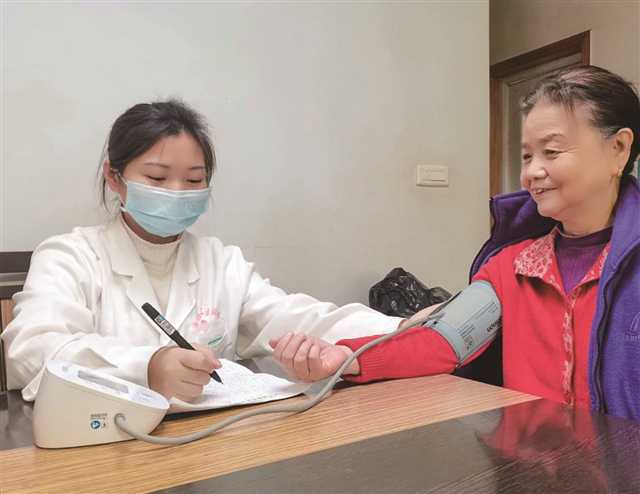 与此同时,在春晖路街道松青路社区新城明珠小区,社区卫生服务站医务人员正上门为居民周如芬提供诊疗服务。“周婆婆,您要注意低盐饮食,缺的药等到货了我们就送来。”74岁的周如芬行动不便、出门看病困难,“床前”医疗服务让她倍感暖心。