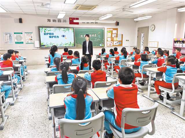 德精小学将一幅巨大的视力表设置在6层楼高的电梯外立面,让学生仰头间就能辨识图案、数算楼层,把护眼练习融入日常。中华路小学完成教室灯光改造,并为低年级学生配备坐姿矫正器,为高年级学生配置可升降课桌椅。求精中学购置了一批眼球按摩仪,并配备相关辅助设备,为学生眼部保健工作提供硬件支撑。