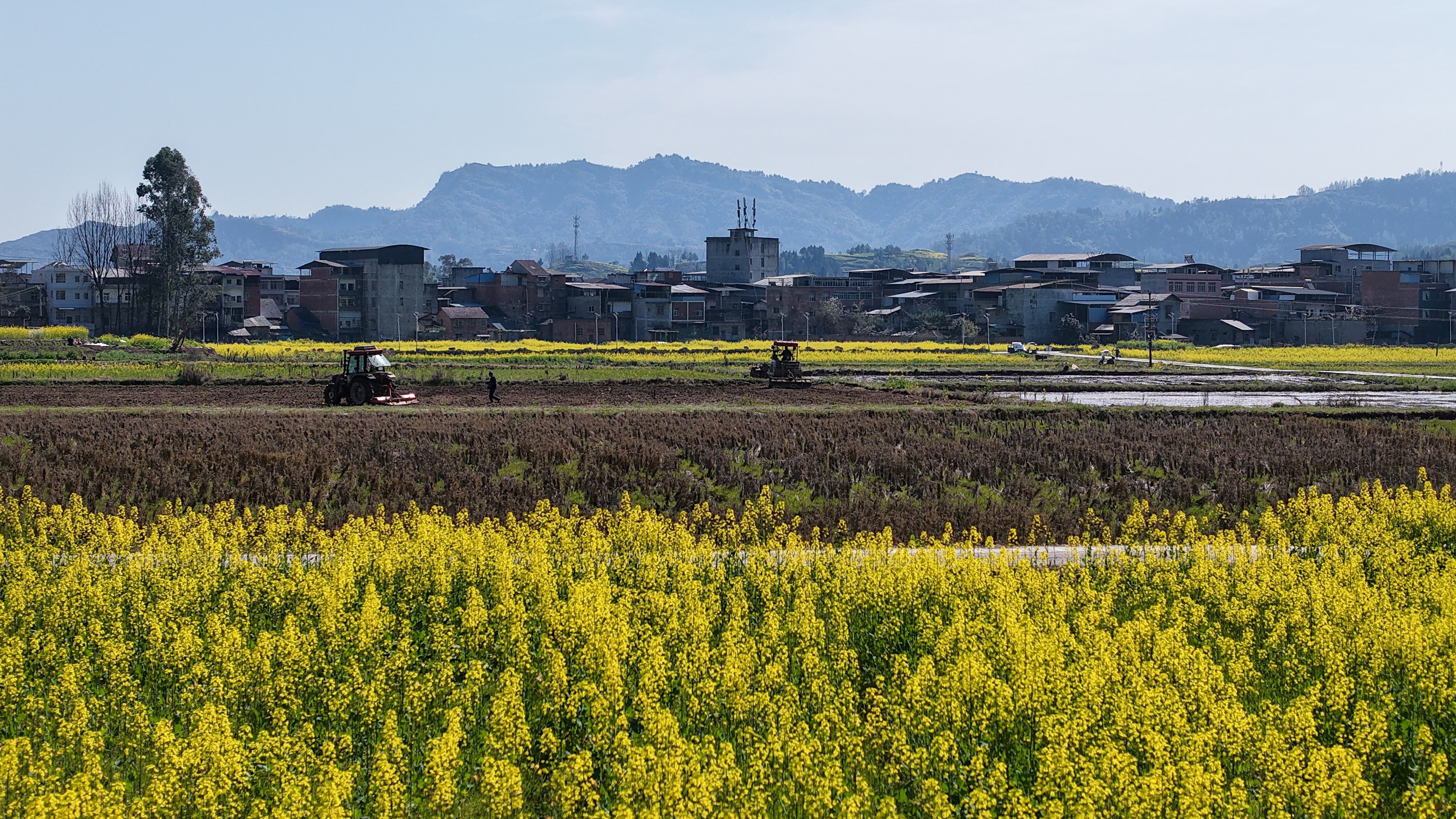 走进云阳县路阳镇中和村,记者看到4台大中型旋耕机正在田地里来回穿梭,原本平整的水田显得更加松软。