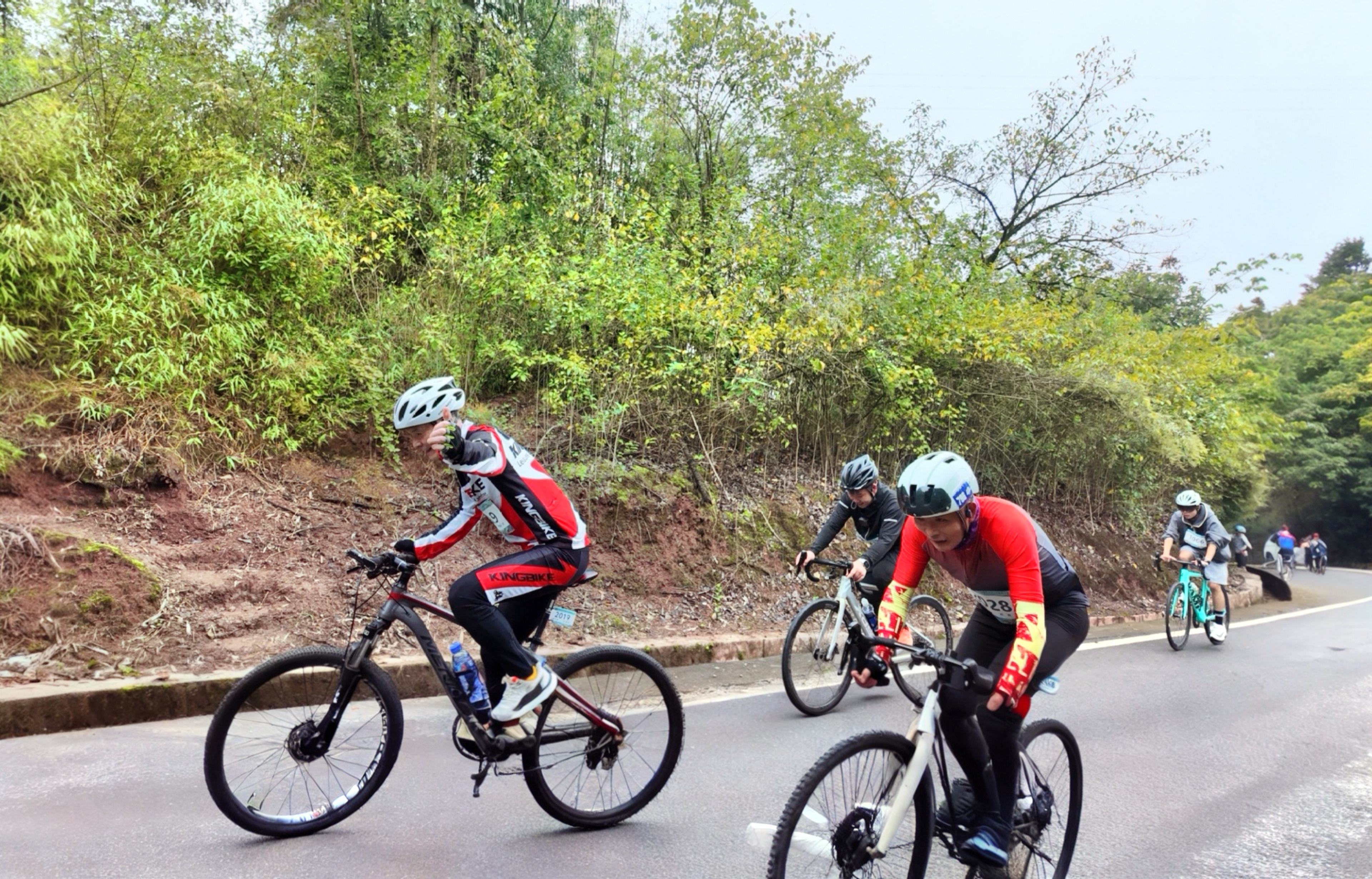 当天9时15分,发令枪声划破长空,成人组选手如离弦之箭冲出起点,在11公里的赛道上展开角逐。骑行队伍沿着新修的柏油路穿行,驶过天坪山的盘山公路,最终抵达集体村梨园文化广场转换区。在这里,选手们迅速转换项目,投入到环梨园基地3公里的跑步赛段。