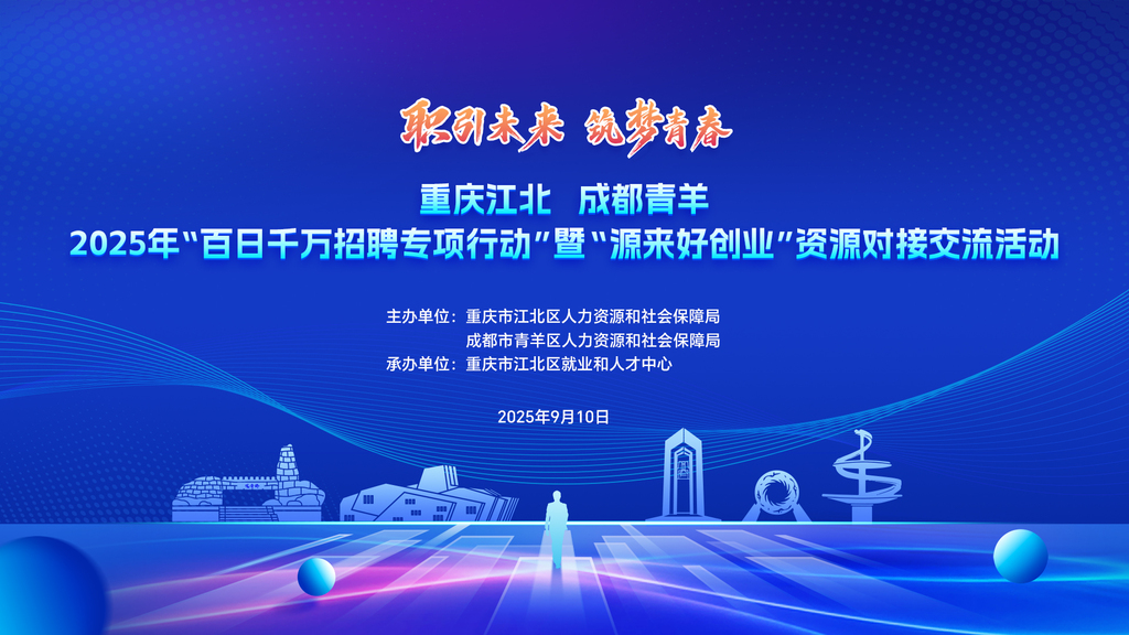 9月10日,由重庆市江北区人力资源和社会保障局、成都市青羊区人力资源和社会保障局主办,江北区就业和人才中心承办的2025年“百日千万招聘专项行动”圆满落幕。