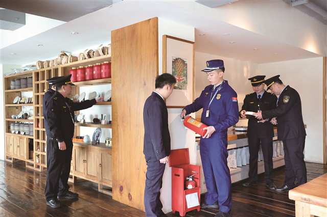 石井坡街道综合执法大队联合沙坪坝区市场监管局、区消防救援局对辖区酒店安全开展“综合查一次”(沙坪坝区城市管理局供图)