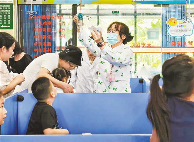 9月15日,重庆市中医院儿科病房,医护人员正在为患儿治疗。记者 崔力 摄/视觉重庆
