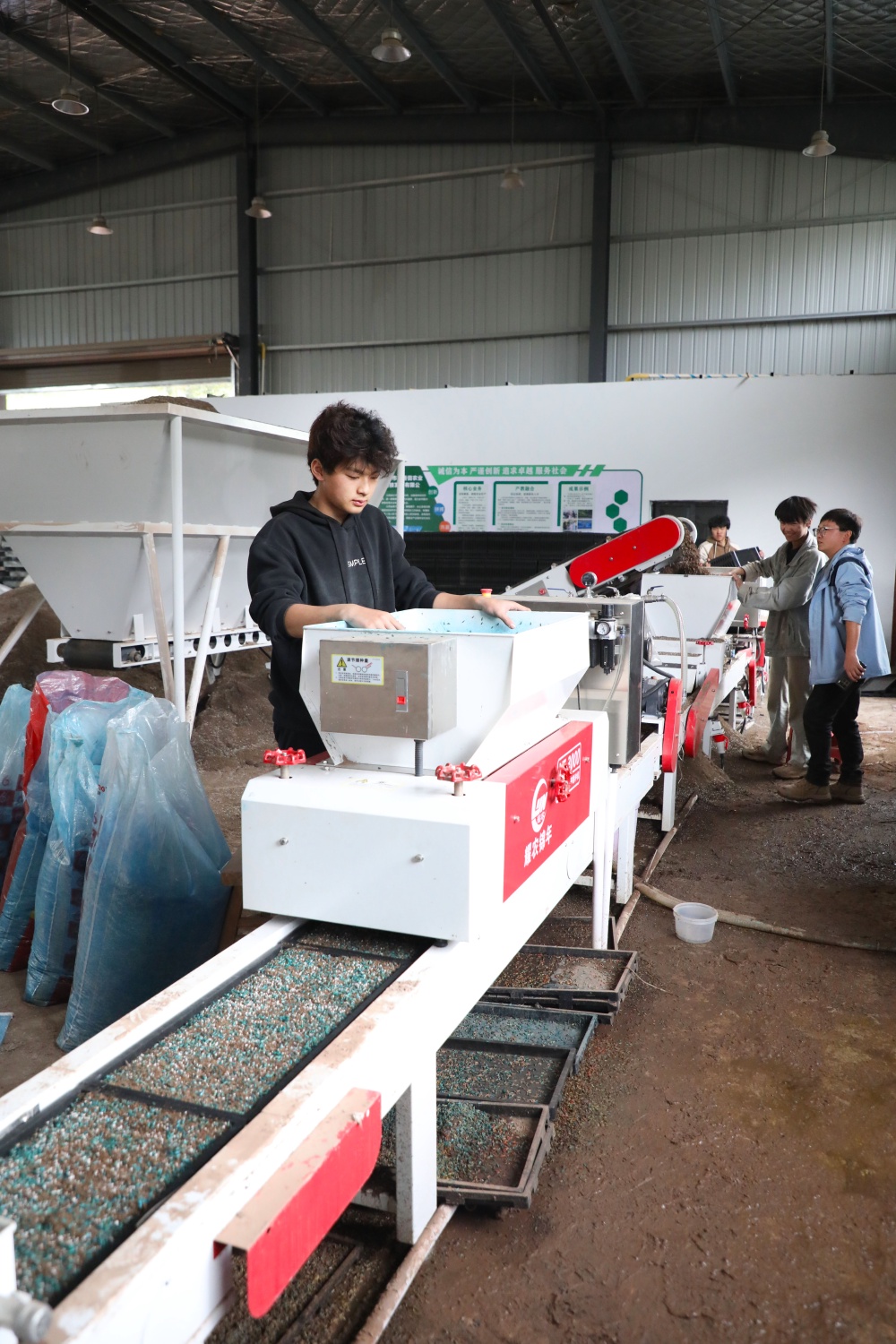 3月24日,梁平区安胜镇龙印村,技术人员通过水稻育秧生产线开展水稻育秧。特约摄影 刘辉