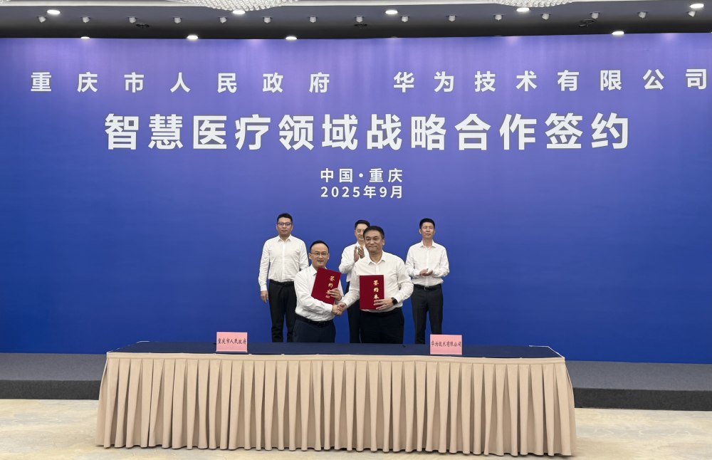 9月26日,重庆市政府与华为技术有限公司在渝签署智慧医疗领域战略合作框架协议,双方将围绕共建数字健康新生态展开一揽子对接合作。