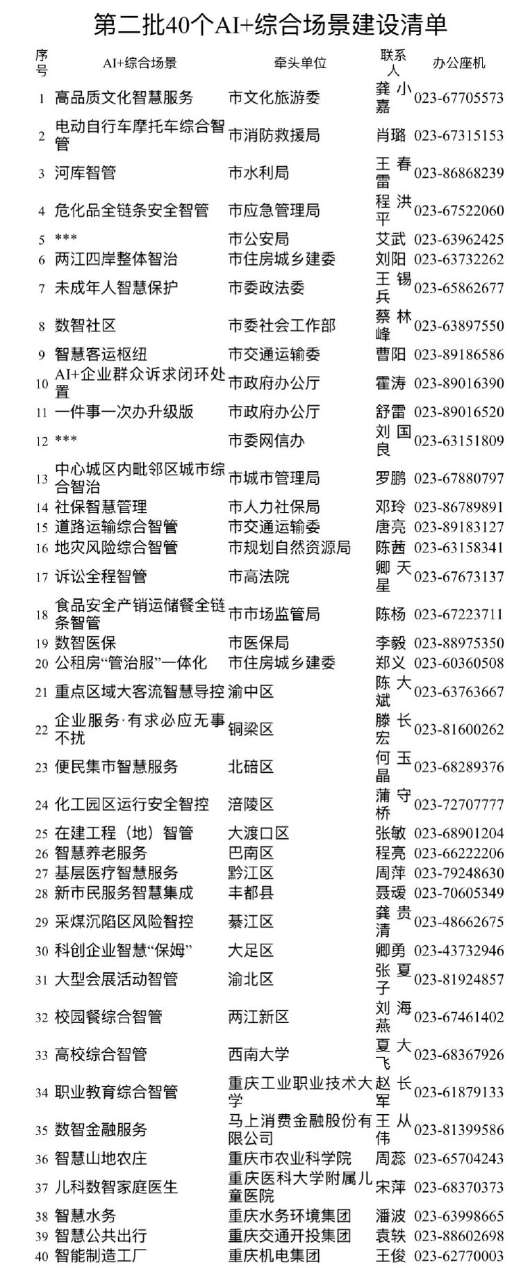 数字重庆第二批AI+综合场景建设清单
