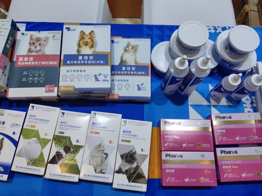大会现场展示的宠物药品。记者 罗芸 摄