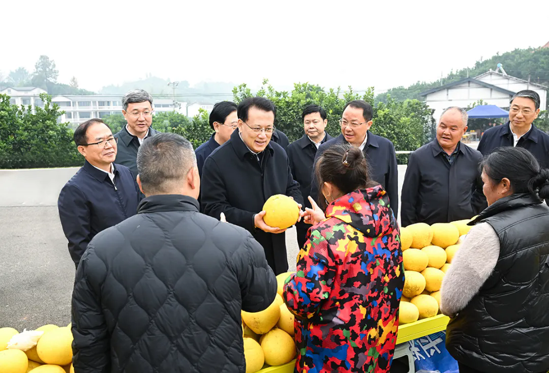 来到垫江中一种业公司,袁家军参观制种平台和种质车间,同科研人员交谈,希望企业加强种业基础研究,加大创新攻关力度,不断提升种业育、繁、推一体化水平,为把农业建成现代化大产业作出积极贡献。在长寿邻封镇,袁家军深入了解长寿柚产业发展思路和举措。他指出,要创新发挥农合联作用,高效整合科技、金融、人才等要素资源,选育用好农村致富带头人,大力吸引外出务工人员返乡就业创业,引领带动农民持续增收、村集体经济持续壮大。走进垫江沙坪镇毕桥村,袁家军实地察看高标准农田建设情况。他强调,要依托国土空间“一张图”,全面提升高标准农田建设、验收、管护水平,更好藏粮于地、藏粮于技,守牢耕地保护红线和粮食安全底线。