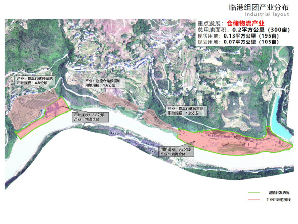 临港(花台)组团:地处县城东南方水路16公里处,其独特的地理位置(东临孝子溪、西至洞子口、南临大宁河、北齐张家梁子)使其成为水运的便捷之地,尤其在175水位时,可停靠3千吨级的船舶。目前,临港(花台)组团已建成工业区77.25 亩。