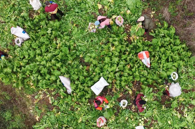 当冬日暖阳越过山头,铺洒在丰都县十直镇秦榜沟村的田野上。放眼望去,成片的青菜头植株粗壮、球茎饱满,正待收割。