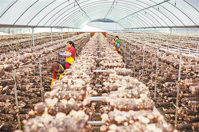 绿水村建立起“龙头企业+专业合作社+家庭农场+农户”联动发展模式,如今,村里有蘑菇生产经营者10多家,其中工厂化的龙头企业2家,食用菌年产量从2000吨提升至6万吨,产品辐射西南、华中、华南,并出口韩国、越南、泰国等周边国家,蘑菇年产值突破6亿元。