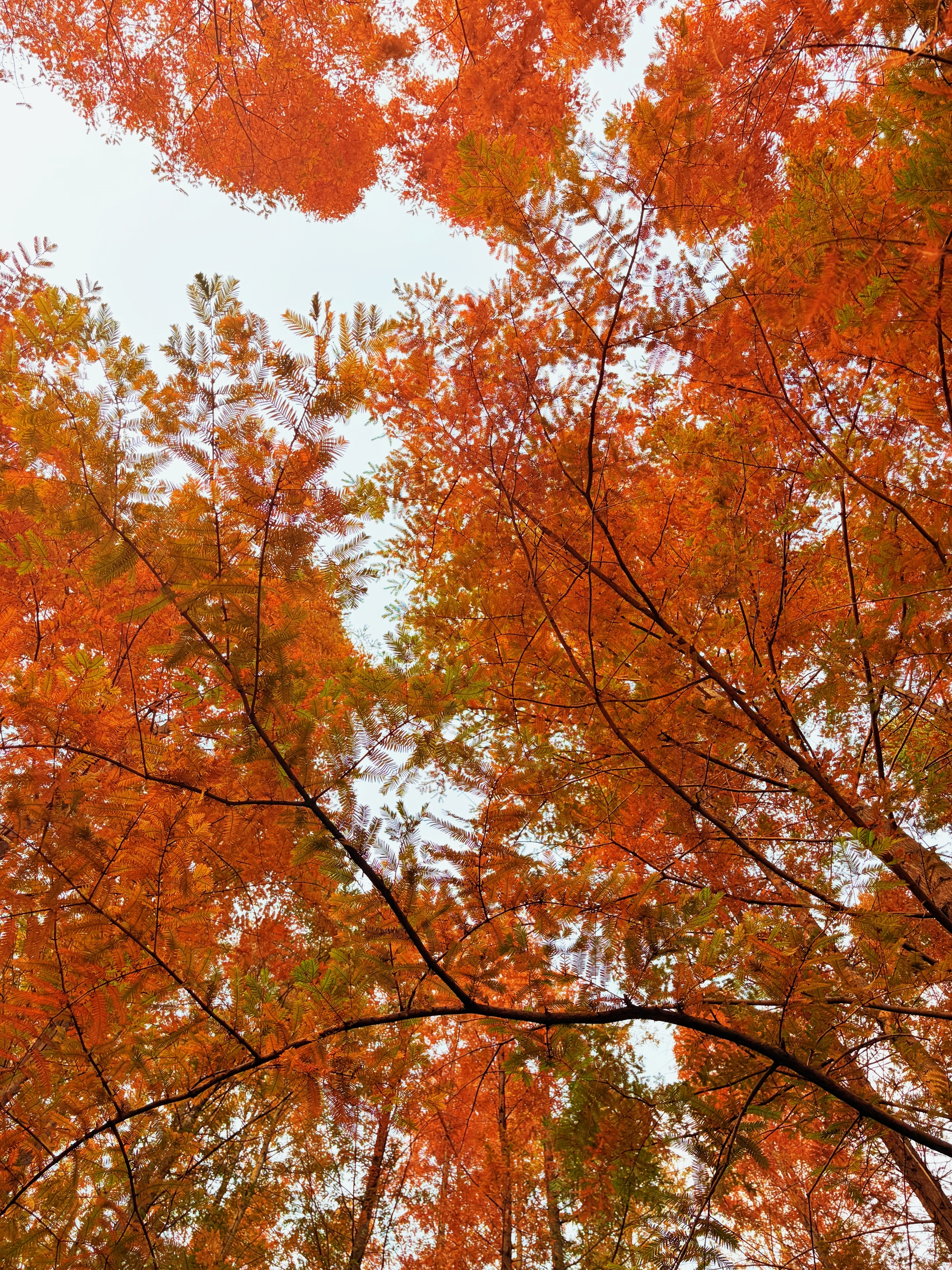 冬意渐浓,荣峰河畔水杉林悄然换上“红妆”。阳光穿透枝叶,在地面投下晃动的光斑,为这幅冬日画卷添了几分灵动。