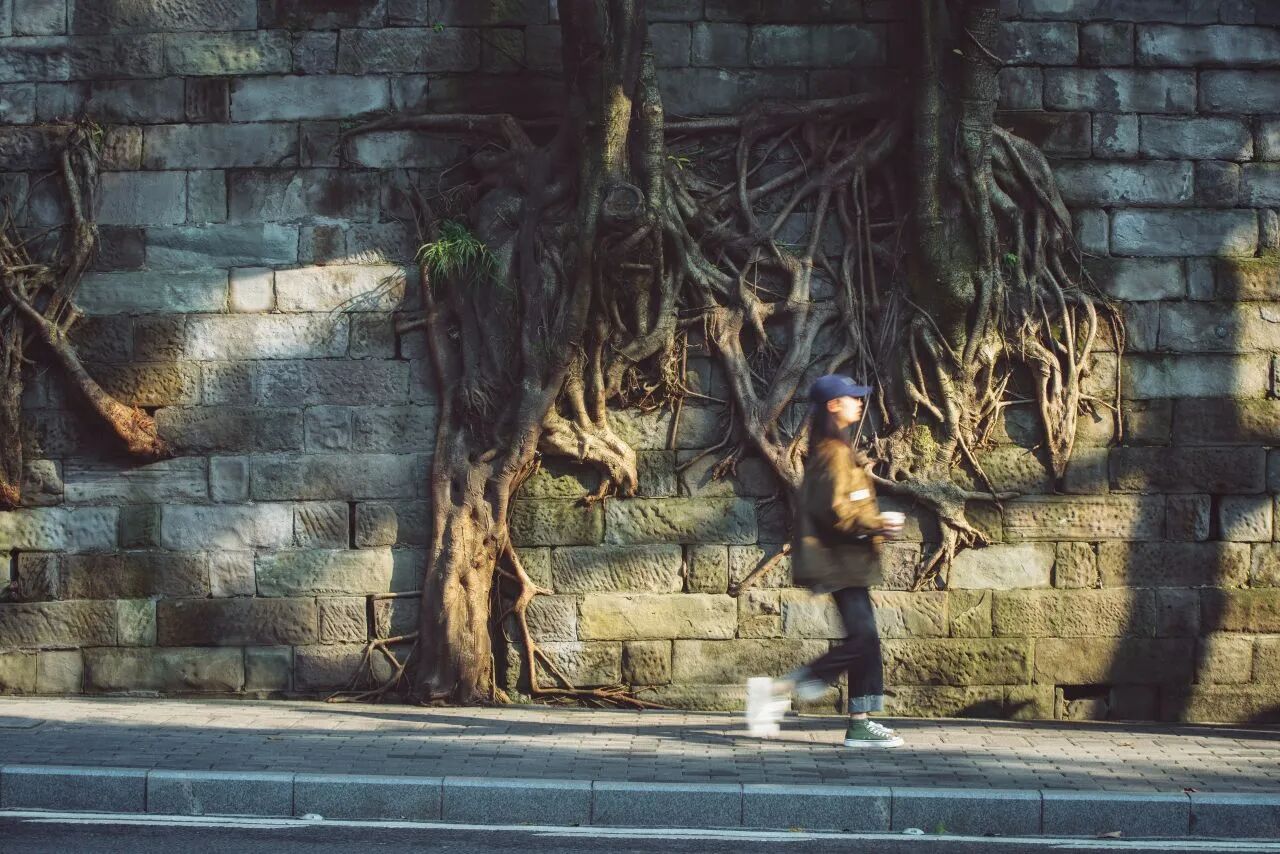 青石板串联起黄墙,与灰瓦转角撞见百年黄葛树,藤蔓攀着老窗棂,光影在街巷间流淌,仿佛跌入时光褶皱里的绿野片场。