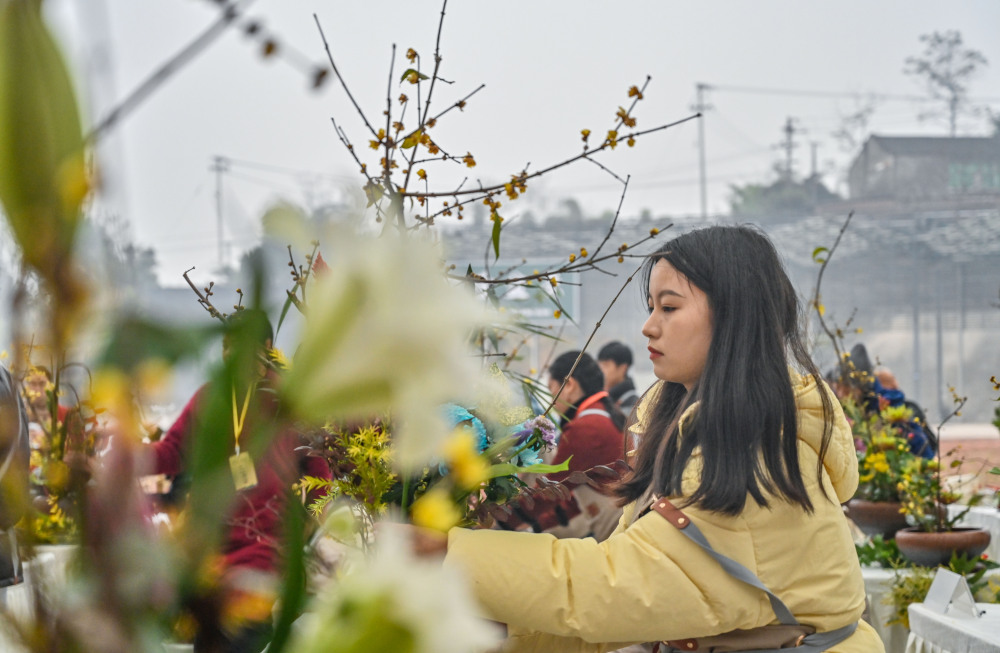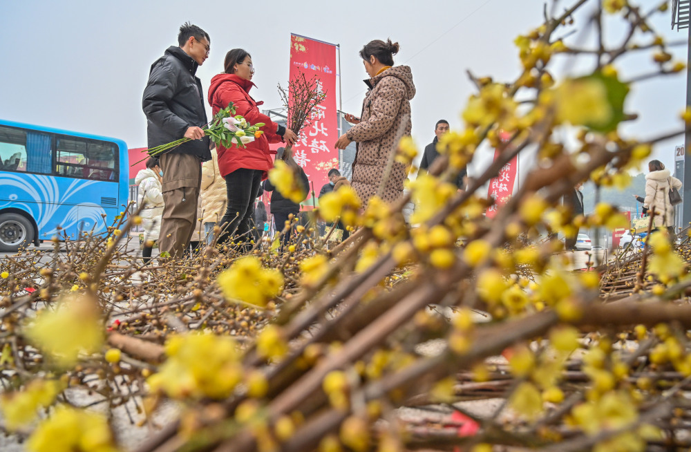 市民正在购买蜡梅花。首席记者 龙帆 见习记者 魏瑞 摄