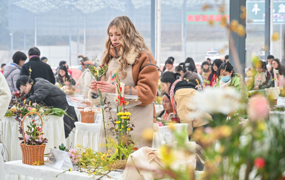 市民正在进行插花。首席记者 龙帆 见习记者 魏瑞 摄