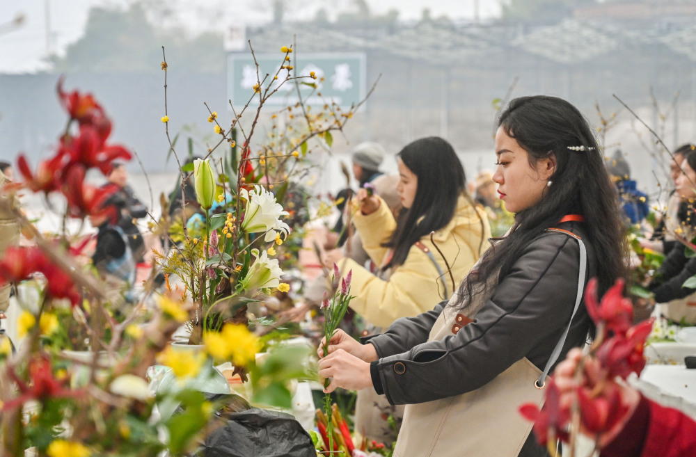 以蜡梅为主要花材的花束深受市民喜爱。首席记者 龙帆 见习记者 魏瑞 摄