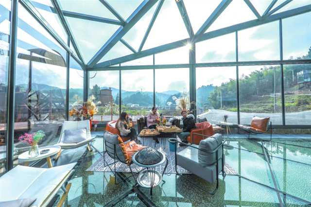 游客在梁平区竹山镇猎神村矿咖民宿休闲玩耍 摄/熊伟