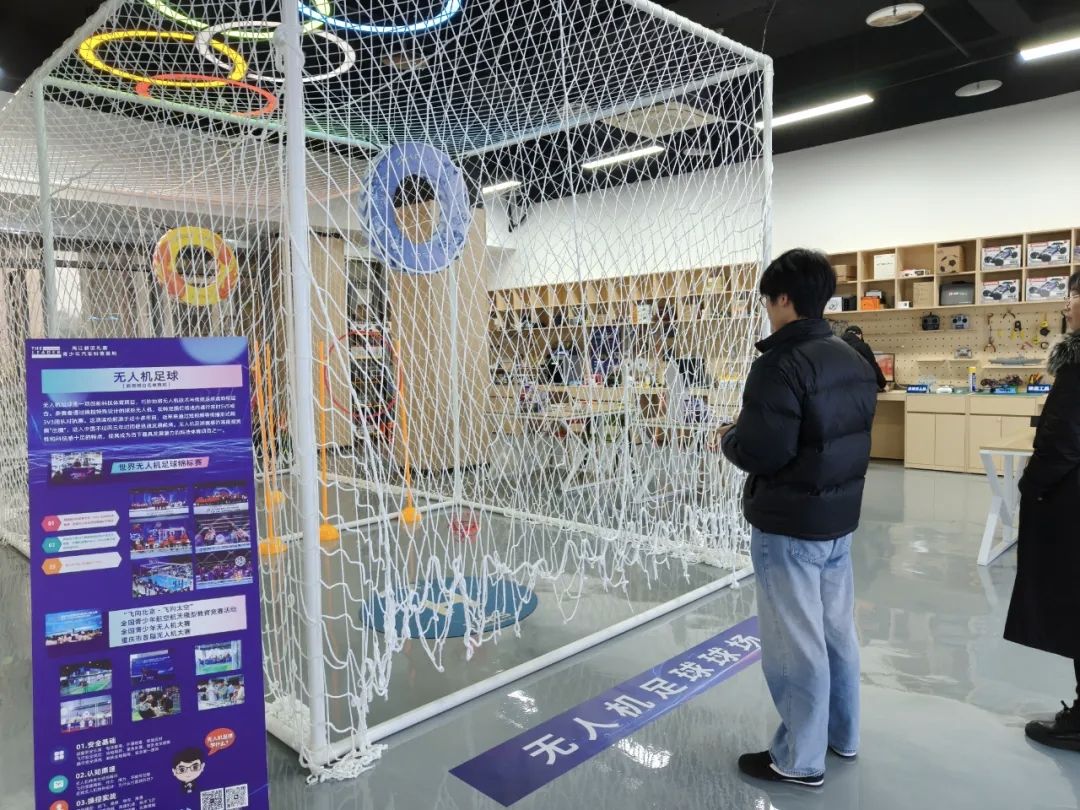 在服务“15分钟生活圈”方面,中心将前沿科技资源下沉至社区。社区科学实验室配备人形机器人、3D打印机、无人机动力系统测试台架等先进设施,引进国内领先的人形机器人互动展示平台,让青少年在“家门口”就能感受最新科技魅力。同时,中心积极布局科技体育板块,建立了专业的车辆模型赛道和无人机训练场,提供系统化的车辆模型操控课程和无人机足球培训项目,助力青少年提升工程思维与实战技能。