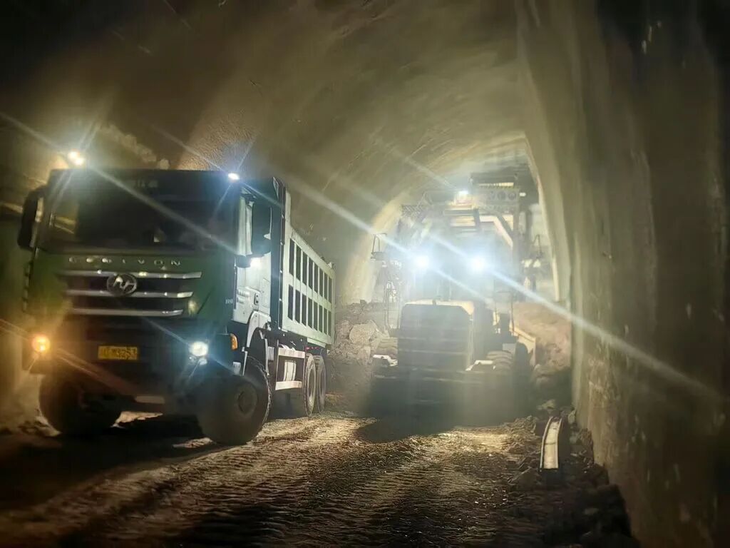 在鹿角隧道项目施工现场,下导洞开挖工作正在火热进行中。