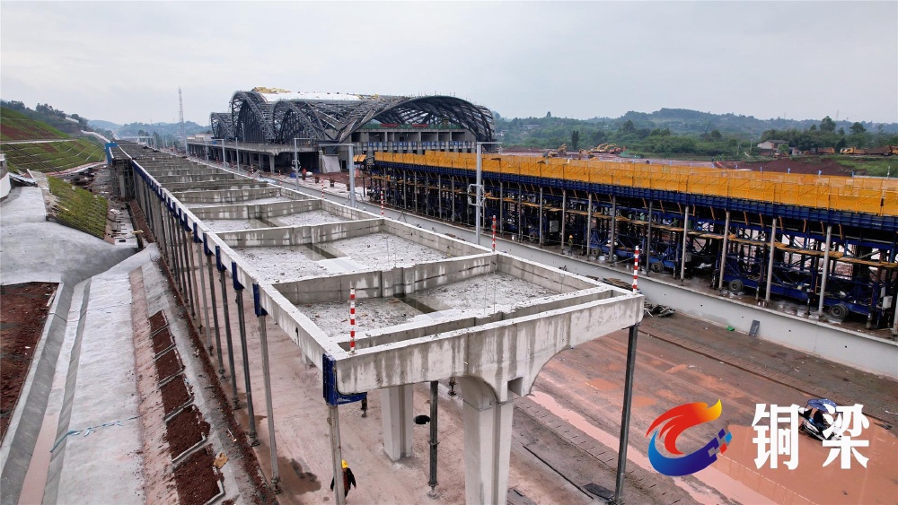 “雨棚结构主体施工完成后,我们将立即开展地面铺装、基本站台清水涂料施工等后续工序,同步推进站房装饰装修与设备安装工作。”何乐佳说,按照施工计划,预计到6月底,将完成铜梁站全部施工任务,确保车站达到静态验收条件,为后续线路联调联试、按期通车做好充分准备。