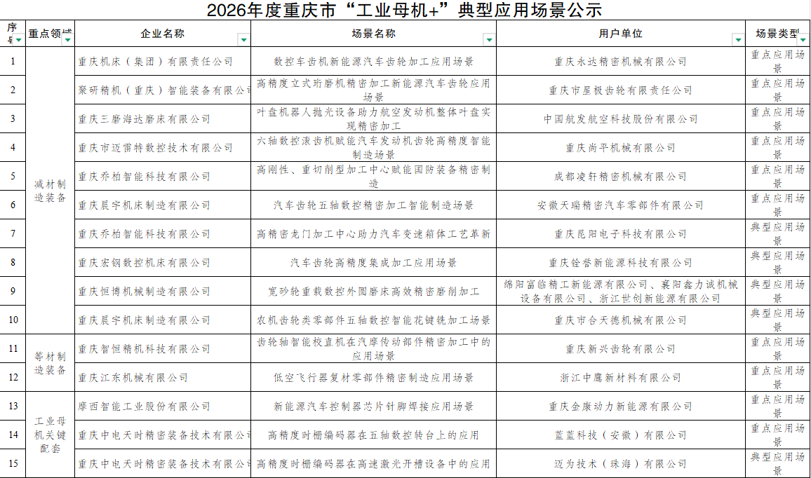 在本年度“工业母机+”应用场景中,重庆机床(集团)有限责任公司推出的“数控车齿机新能源汽车齿轮加工应用场景”,被评为重点应用场景。该场景聚焦新能源汽车核心零部件加工需求,依托自主研发的数控车齿机设备,实现新能源汽车齿轮高精度、高效率、柔性化加工,可有效解决新能源汽车齿轮加工精度要求高、批量生产难度大的行业痛点,助力新能源汽车行业降本增效、补齐核心装备短板。