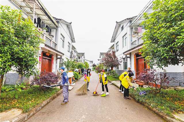 四月十一日,大足区棠香街道,志愿者们在进行爱国卫生清扫活动。特约摄影 瞿波