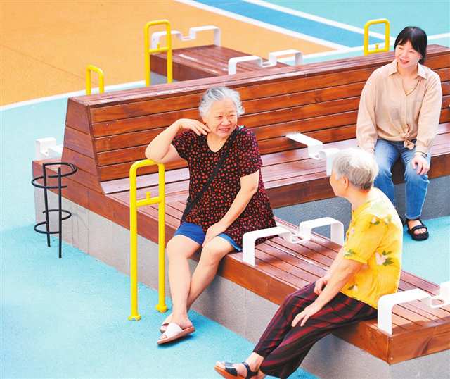 沙坪坝区石井坡街道一老旧小区,几位老人正在适老化改造后的院坝休闲聊天。通讯员 孙凯芳 摄\视觉重庆