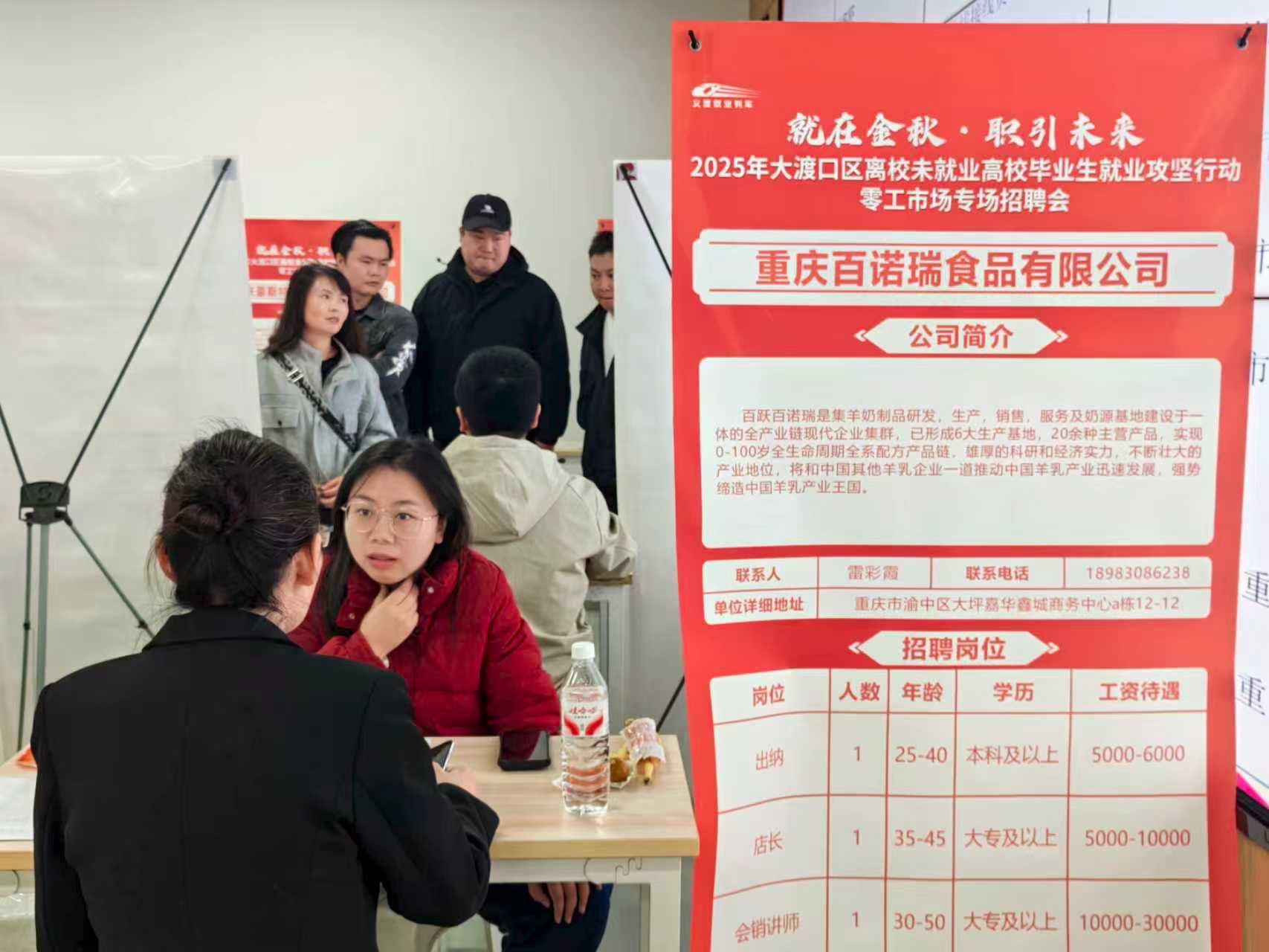 11月6日上午,大渡口区人力社保局在位于建胜镇百家园社区附近的义渡数字零工市场举办了“就在金秋·职引未来”——大渡口区离校未就业高校毕业生就业攻坚行动零工市场专场招聘会。据了解,这场恰逢大渡口区第十九个“重庆农民工日”服务周的招聘活动,既聚焦青年求职需求,又兼顾多元就业群体,成为大渡口区打通青年就业服务“最后一公里”的生动实践。