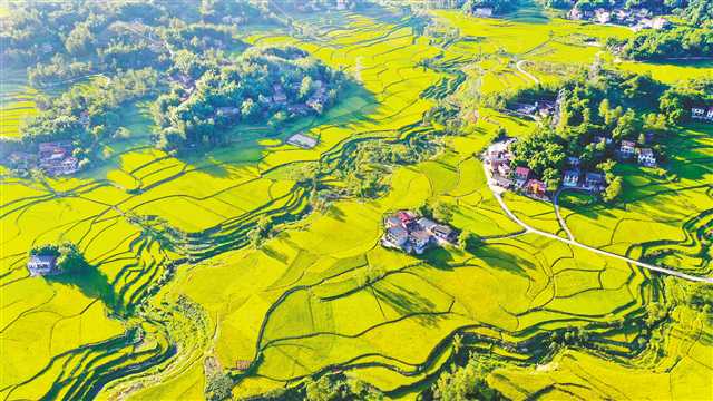 成片稻田翻金浪,丰收在望 摄/刘辉
