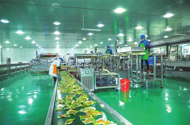 重庆上口佳农业开发有限公司生产车间,忙碌的豆干自动传送带 摄/熊伟