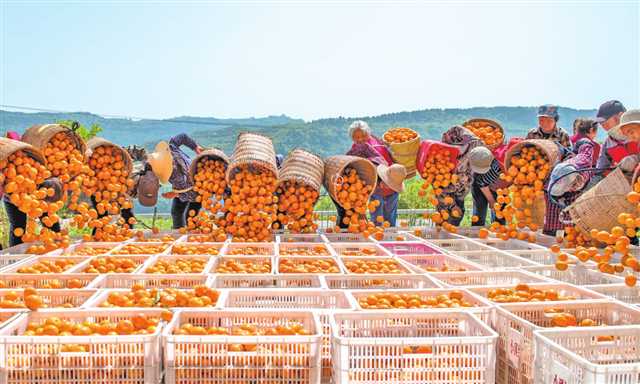万州区小周镇村民忙着采收柑橘 摄/侯本艳