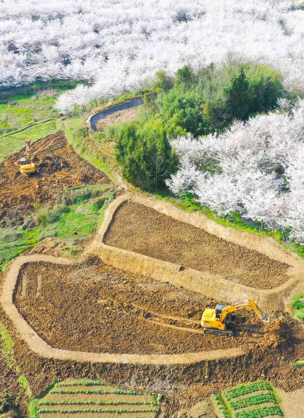 2024年3月24日,梁平区铁门乡长塘村,机手驾驶挖掘机进行高标准农田改造。(资料图片) 特约摄影 刘辉