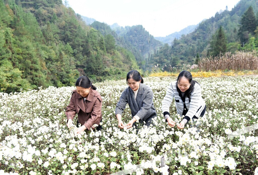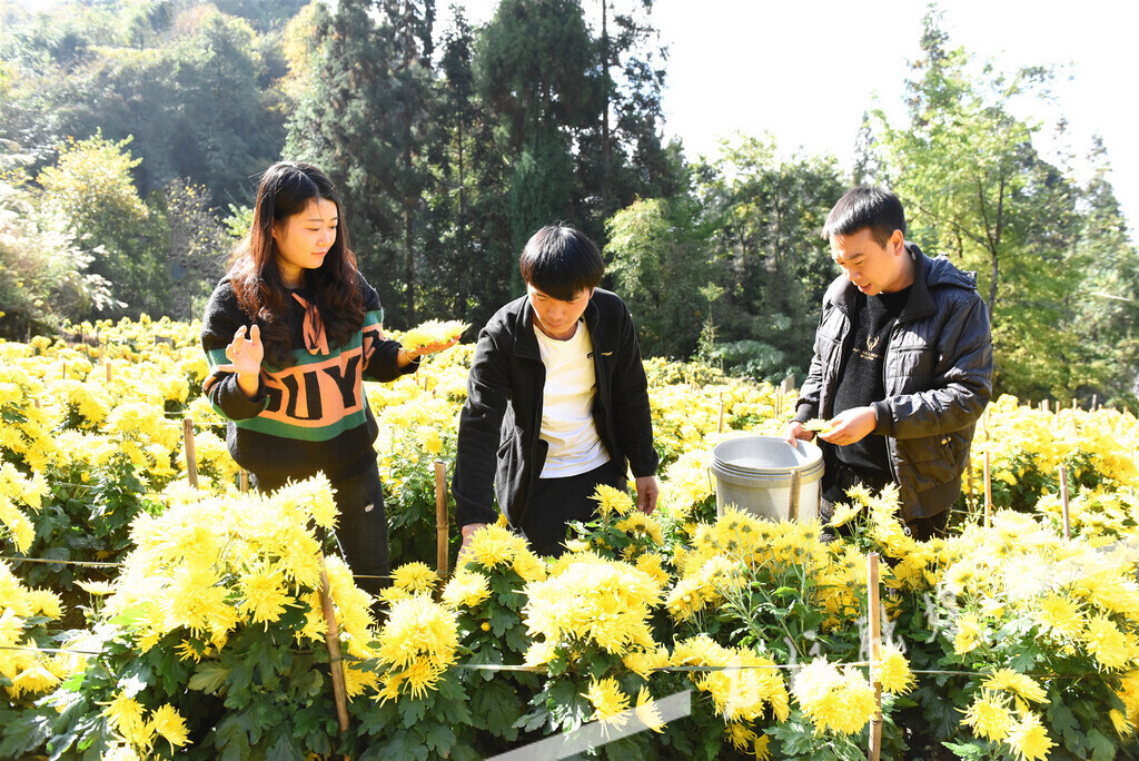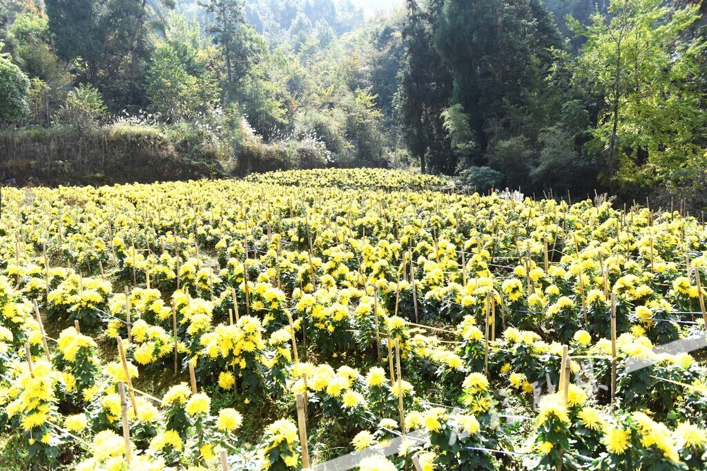 “以前,这山沟沟里的地都是闲置的,没想到却是种植菊花的好土。自从何思勇回乡发展菊花产业,就带着我们走上了增收致富路。”在基地采摘贡菊的村民说。