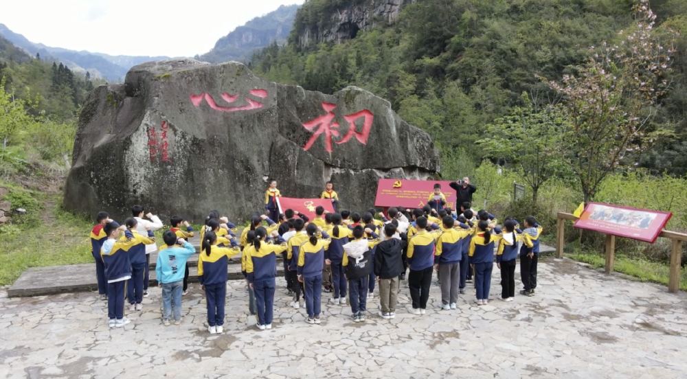 学生在初心广场宣誓。图源:石柱县融媒体中心