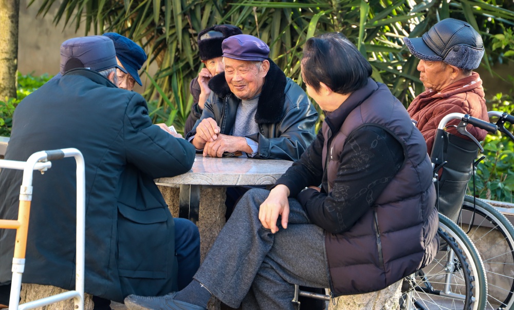 云阳县宝坪镇老年护养中心,老人们在午后娱乐。