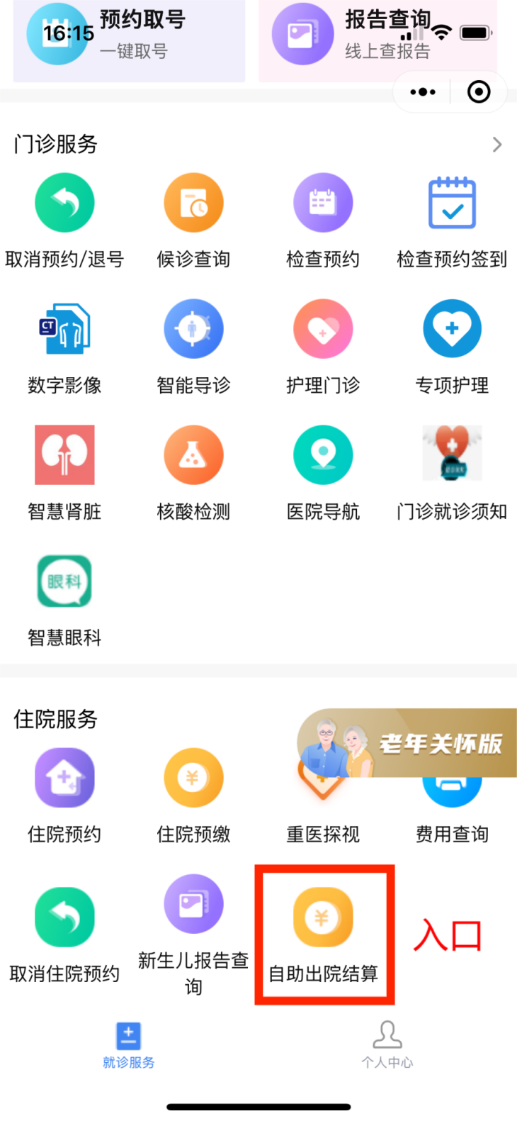 市民可在“重医一院”小程序的“住院服务”中找到“自助出院结算”办理医保出院结算。 重医附一院供图
