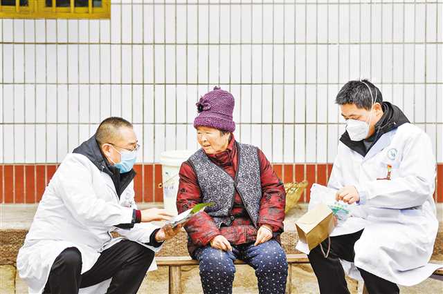 ▲1月5日,垫江县桂溪街道石岭社区,医生上门向老人发放“健康包”并详细讲解如何使用。记者 齐岚森 摄/视觉重庆