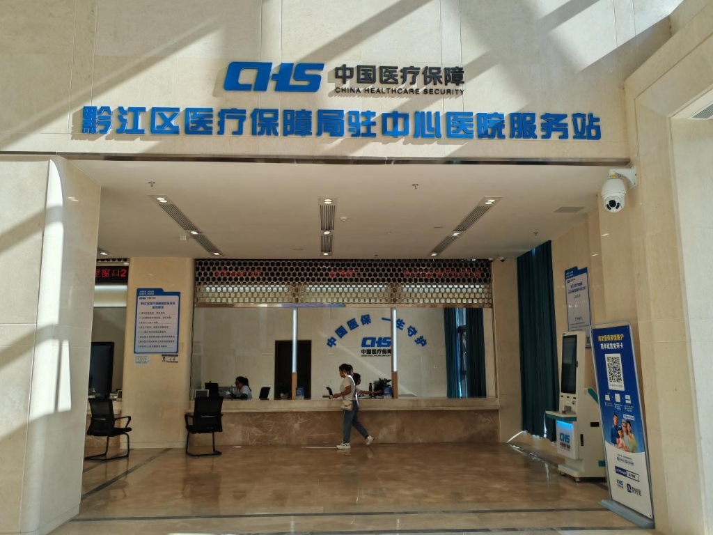 城市里,崭新亮相的黔江区中心医院,相比从前有了一个巨大的变化,在医院住院部,黔江医疗保障局驻中心医院服务站同步启用,通过服务站下设的综合业务办理、医保窗口和医保局医保经办服务站,可以提供包括异地就医备案、政策咨询等业务。