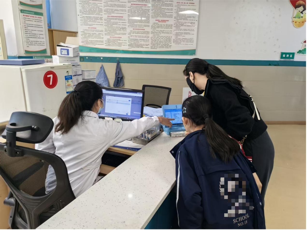 江北区社区卫生服务中心,一位母亲带着女儿前来接种疫苗。 受访单位供图