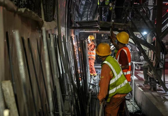5月29日,2023年全国百家融媒体记者走进施工现场看到,金凤隧道主体结构已全部完工,工人正在进行沟槽、消防、机电等附属工程施工。