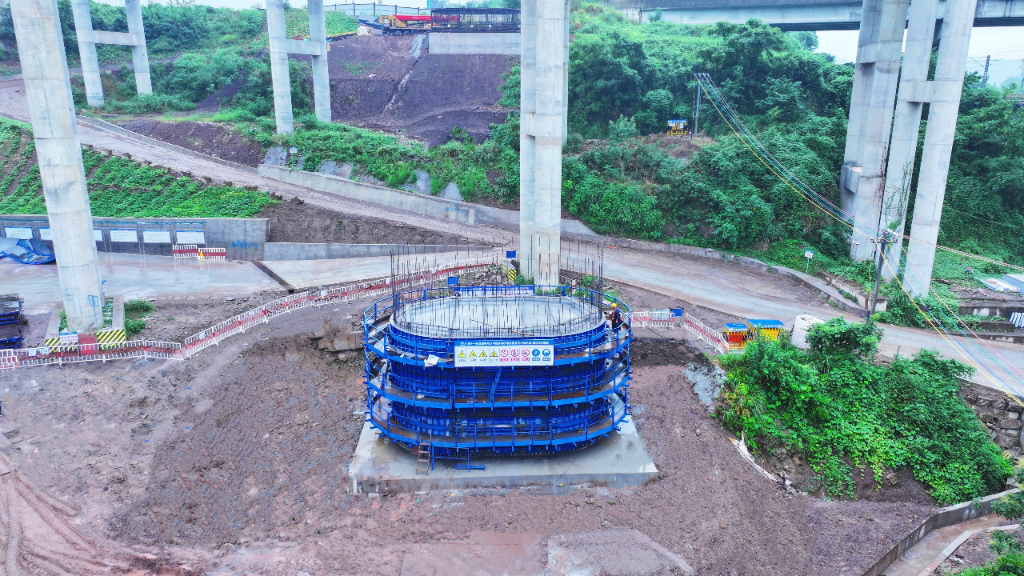 该项目相关负责人介绍,该桥线路所经地区跨越乡道、高速枢纽,占用既有高速边坡且临近湘渝铁路二线,安全风险高、征拆难度高、环水保要求高,是项目的重难点和关键性工程。此次浇筑的首墩为大桥25号墩,墩高38米,设计方量1901.7立方米,分6次浇筑成型。