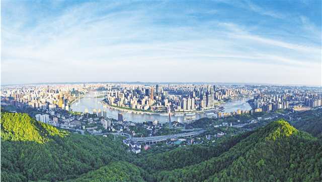 蓝天白云下的重庆主城区。截至11月30日,重庆空气质量优良天数达311天,同比增加7天 摄/谢智强