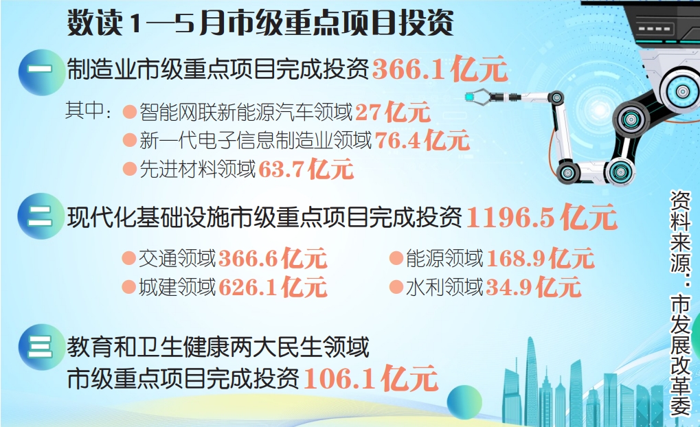 优化投资结构 提高投资效益 1—5月市级重点项目完成投资超1900亿元