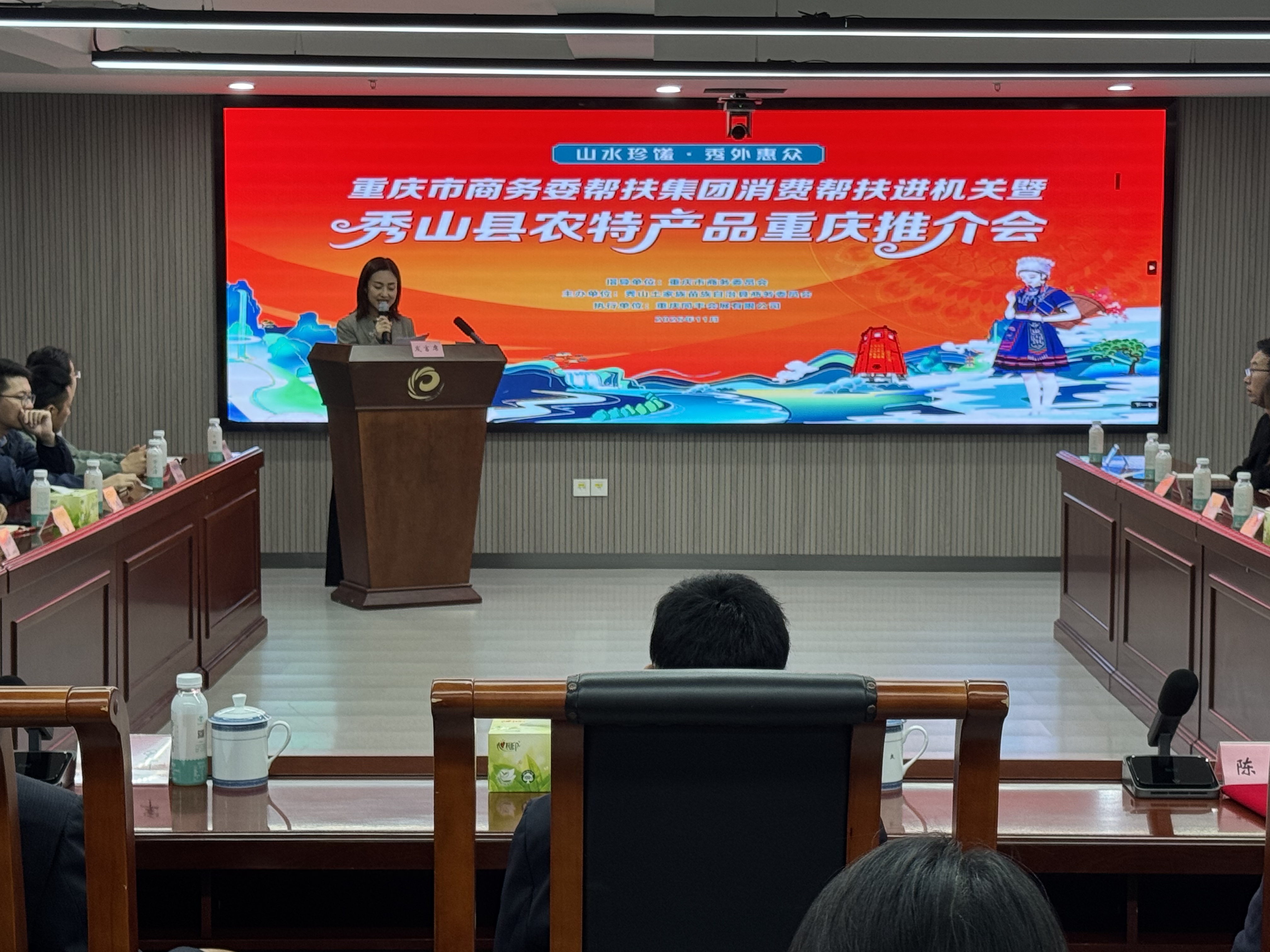 秀山县人民政府副县长陈茂介绍了秀山农业产业发展现状与优势资源。他指出,秀山依托良好生态,培育了爱乐迪鸡蛋、山银花、茶油、贡米等一批地理标志和特色农产品,期望通过推介会让更多重庆市民和采购商了解、品味秀山,推动“秀山味道”走进重庆、走向全国。