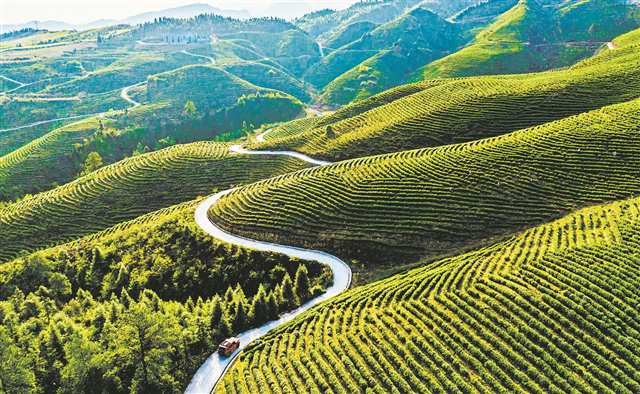 产业兴旺,关键在特色。走进南川区兴隆镇金花村,一片片翠绿的茶园与蓝天白云交相辉映,构成了一幅美丽的田园画卷。金花村党支部书记指着茶山说:“以前这里是荒坡,现在是‘金坡’。”