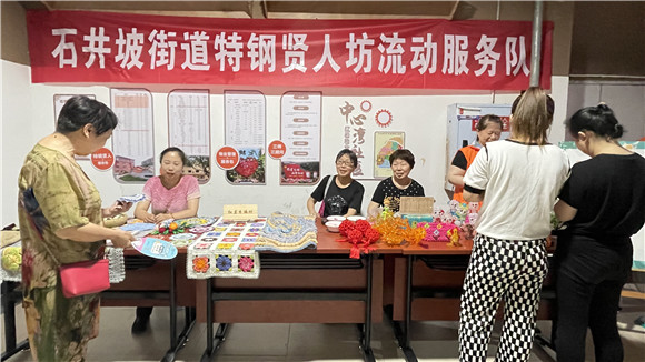 石井坡街道特钢贤人坊志愿者为居民群众教学并展示手工作品。石井坡街道办事处供图 华龙网发